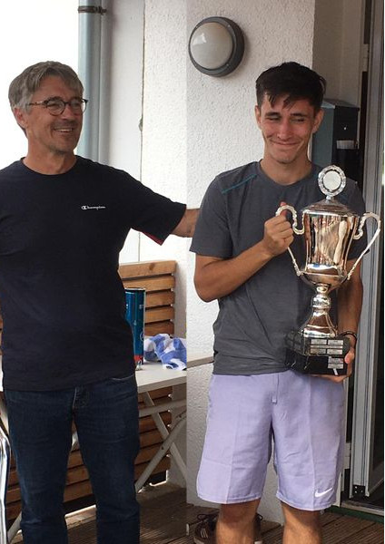 Das Spiel war am Anfang von vielen Fehlern und Aufschlagverlusten geprägt und lebte eigentlich mehr von der Spannung – aber da David weniger Fehler machte und hervorragend verteidigte, konnte er bis auf 8:5 davonziehen und hatte den Sieg schon vor Augen. Aber dann kam Karl Heckerl wieder ins Spiel, da er weniger Fehler machte und David zu passiv wurde, und stellte auf 9:8. David brachte sein Aufschlagspiel zum 9:9 durch und somit musste das Finale im Tiebreak entschieden werden. Auch hier Spannung pur, es ging hin und her, mal der eine vorn, mal der andere – bis in einem wirklich spannenden Finale David Schulze knapp mit 9:7 gewinnen konnte.